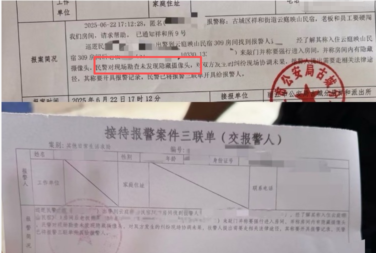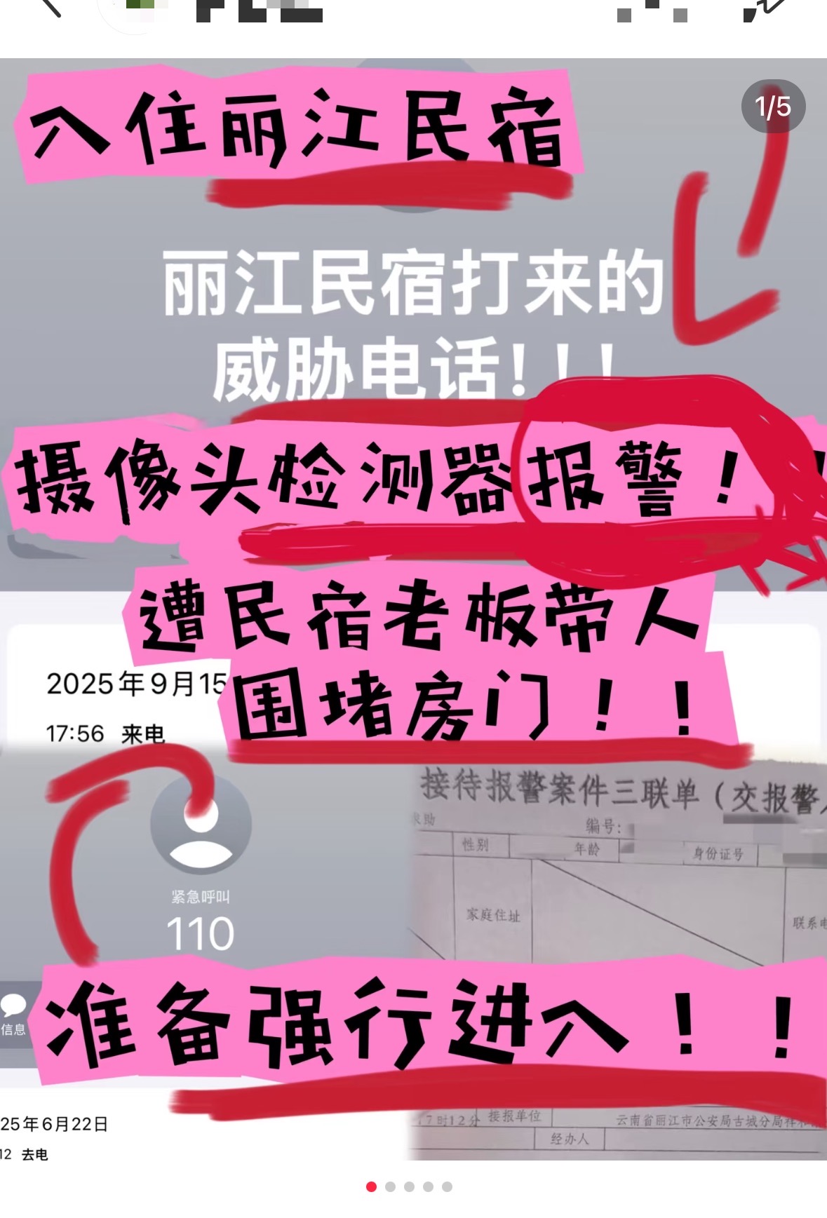 近日,有网友在社交媒体发帖称,自己于2025年6月在云南丽江旅游,入住当地某民宿时,发现房间内疑似装有摄像头,并遭遇民宿老板带人围堵房门,在报警后才得以离店。民警表示将对“摄像头问题”进行深入调查,但时隔3个月后,自己还未收到调查结果,反而接到了民宿方的威胁电话。