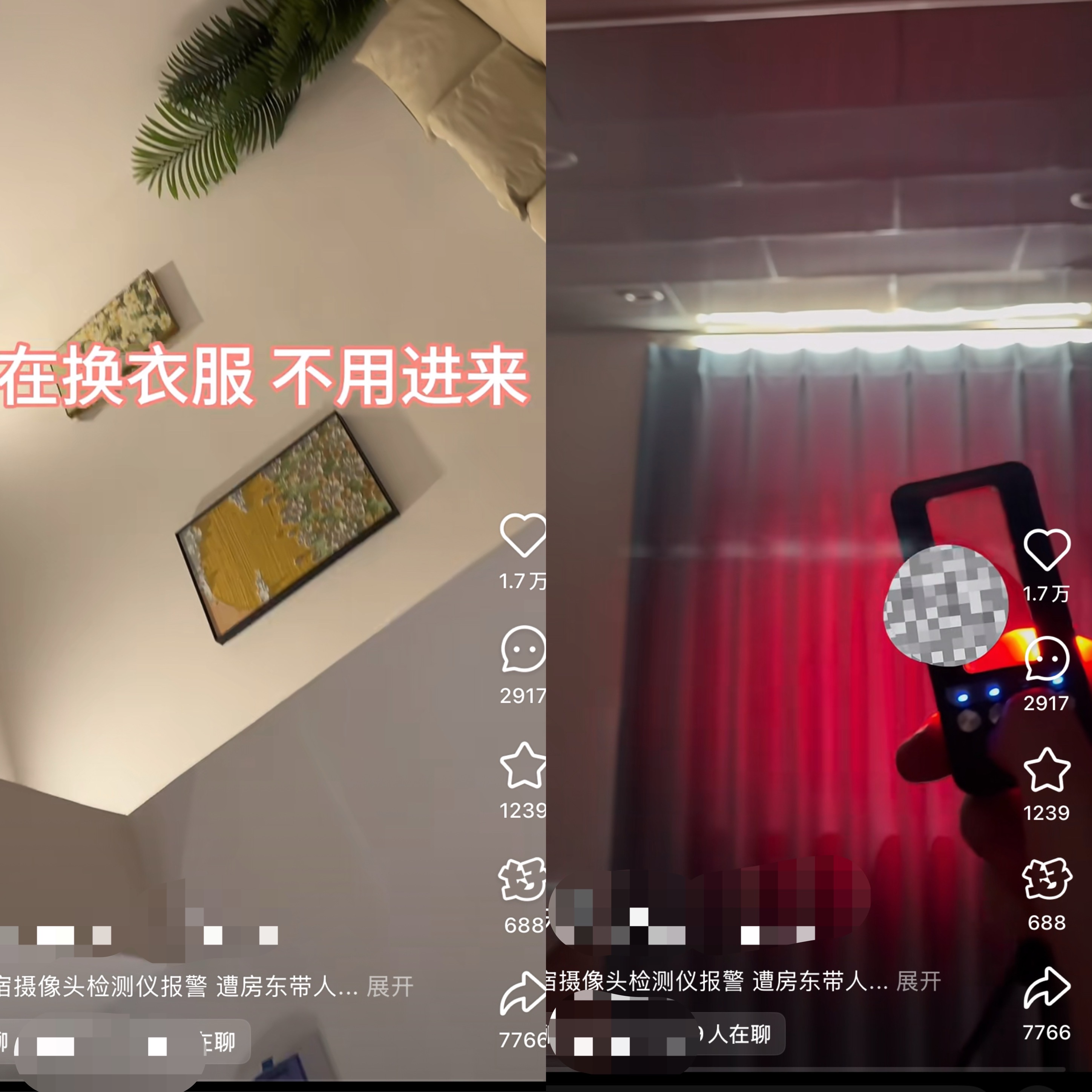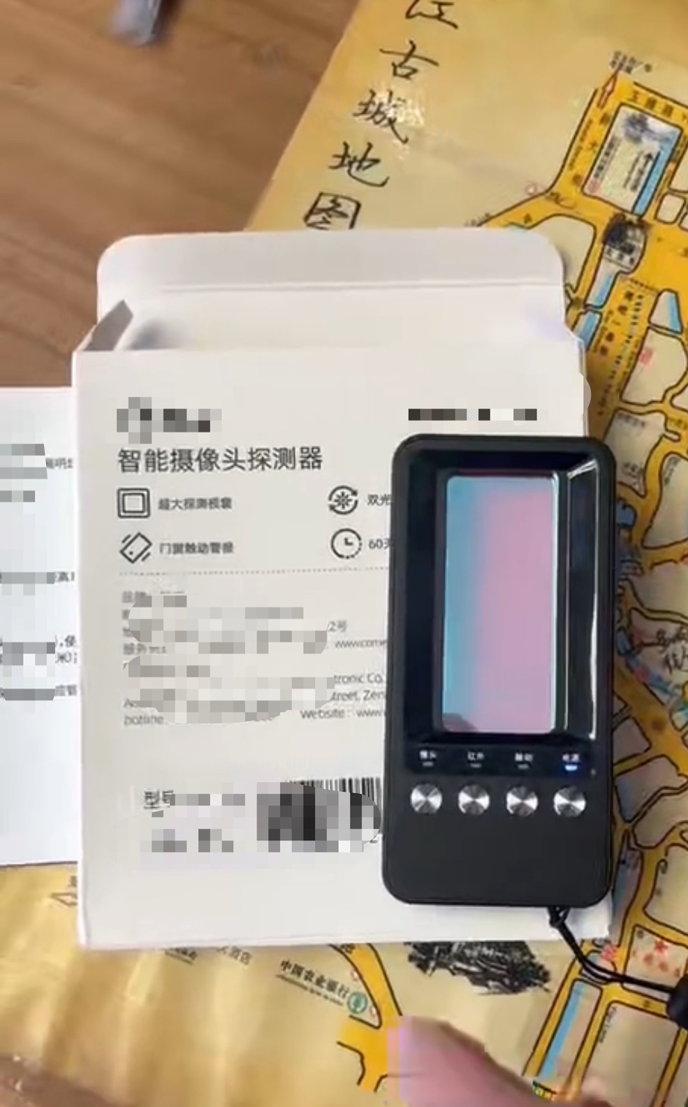 该网友在贴文中谈到,自己与同行伙伴感到十分恐惧,“刚刚检测出多处摄像头异常警报,后脚就遭到民宿负责人围堵胁迫开门,是不是太巧了?”她们选择了报警,民警到场后“一起用检测仪,检测出了发出异常警报的具体位置。”